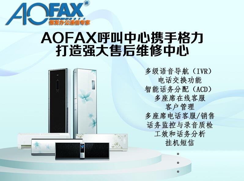格力电器公司是目前全球最大的集研发、生产、销售、服务于一体的专业化企业。2012年实现营业总收入1001.10亿元,同比增长19.87%;净利润73.80亿元,同比增长40.92%,成为中国首家实现千亿的专业化家电企业。 现在顾客关注家用电器不仅看重自身产品质量,对厂家提供的售后和维修服务也是相当重视。为了更好的提升格力在空调产品中的竞争力,格力携手AOFAX技术公司提供的呼叫中心解决方案,建设一个一站式服务的维修中心。