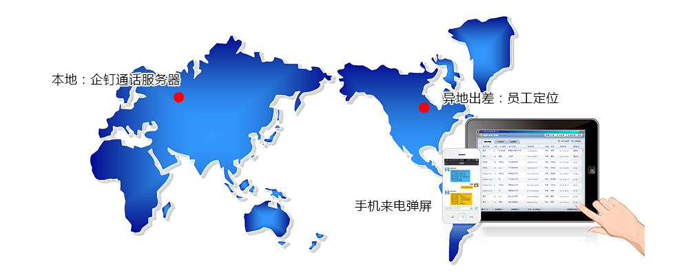 统计通话数量和通话时长按时间的变动形势, 统计通话地理位置变动,均衡区域经理的工作量;可以计算电话线占空比、来电转接率。